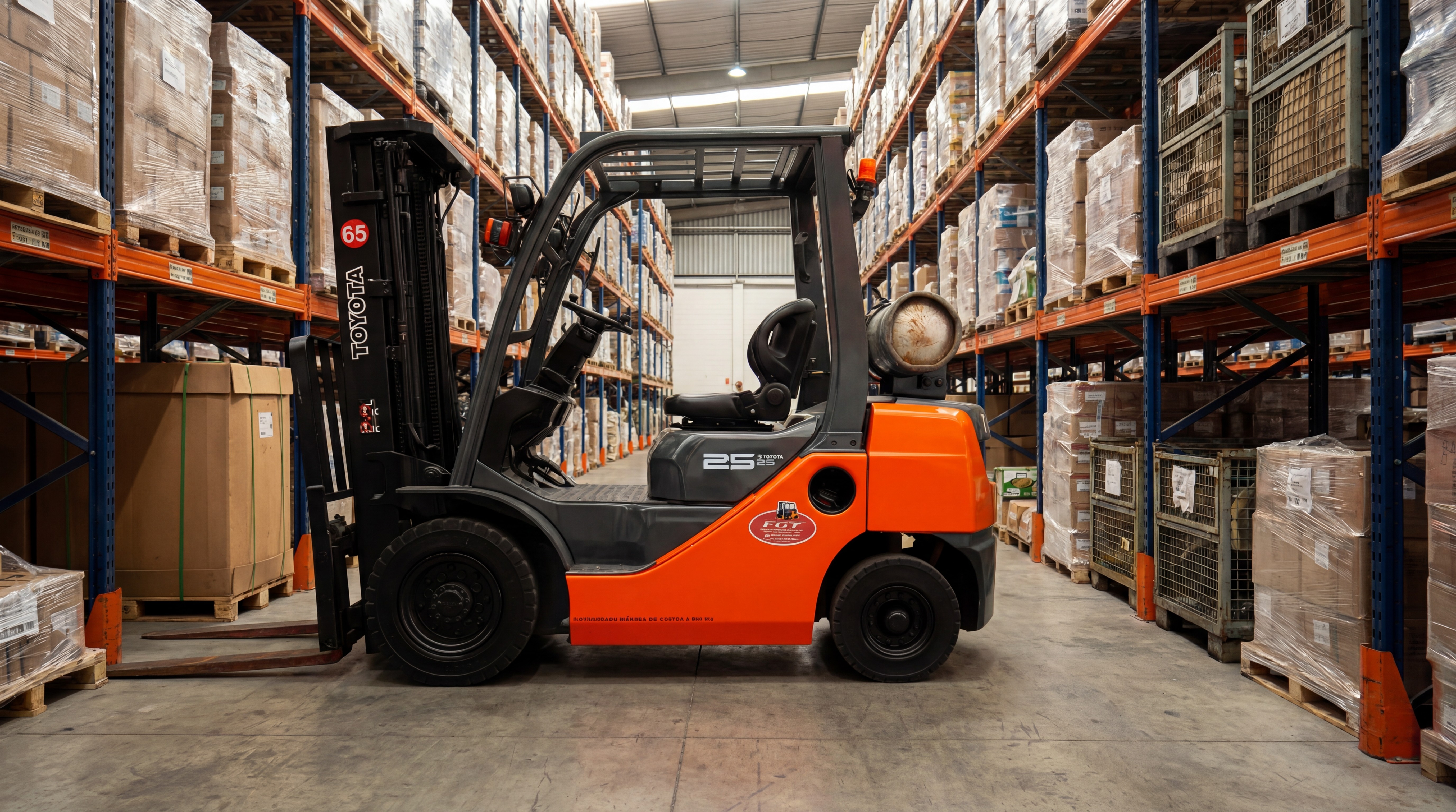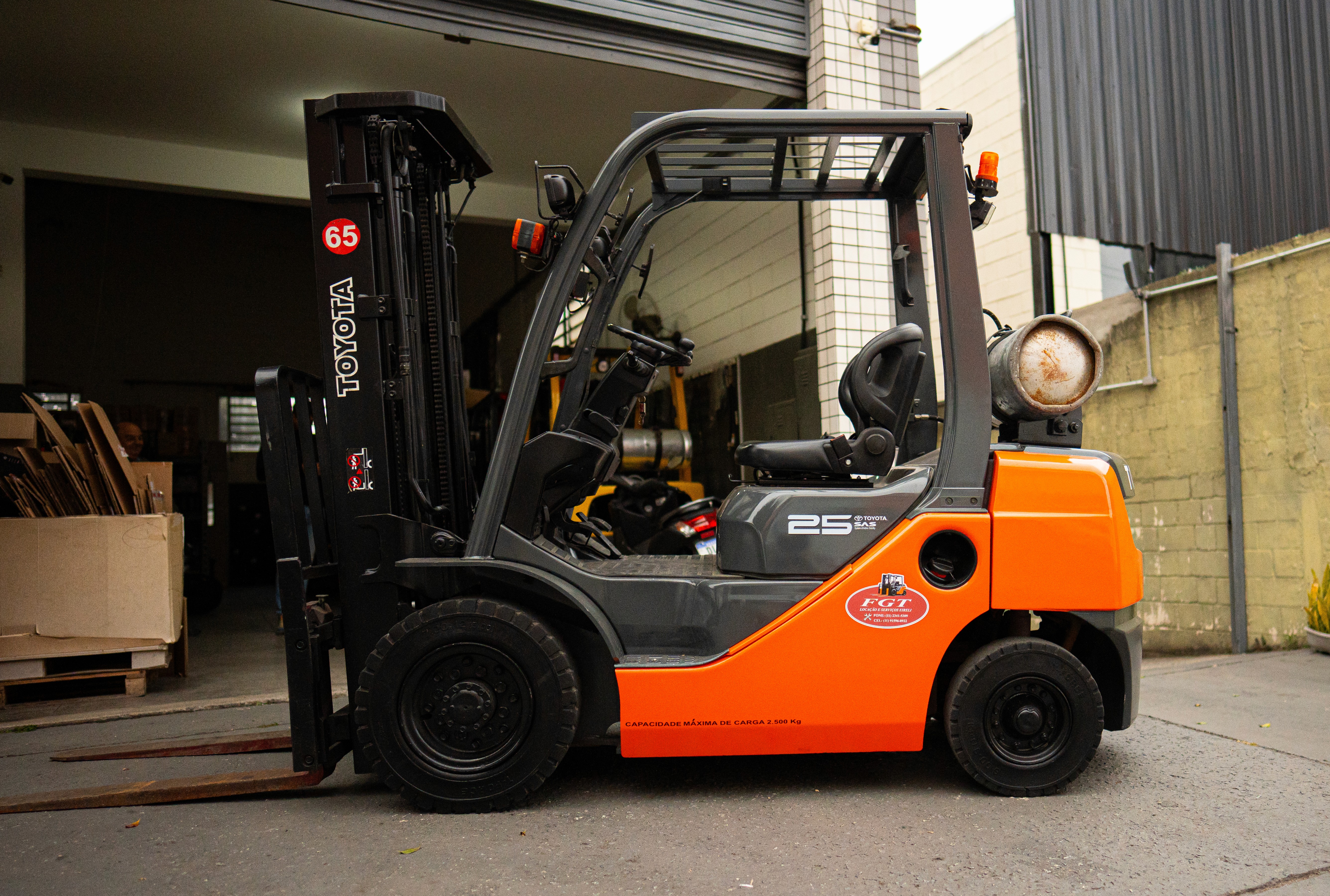 Modelo intermediário com capacidade de 2.500 kg, indicada para aplicações industriais mais exigentes. Combina força, ergonomia e confiabilidade, com motor Toyota 4Y e transmissão powershift